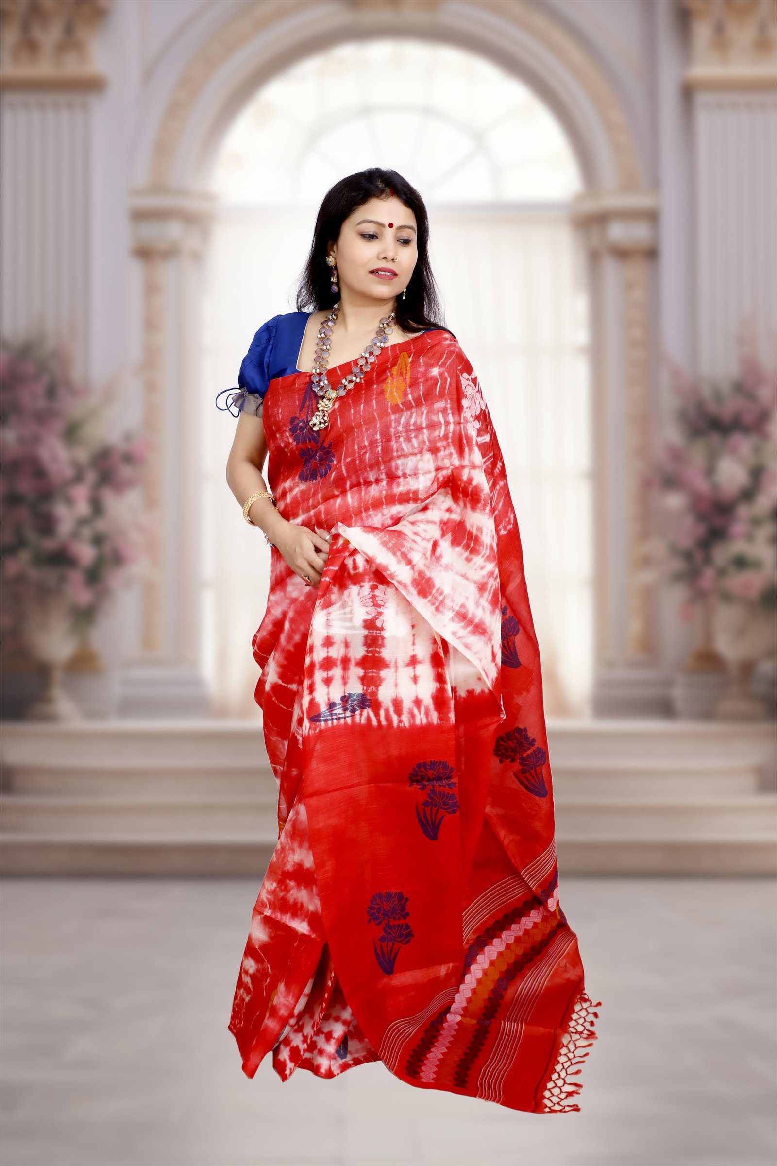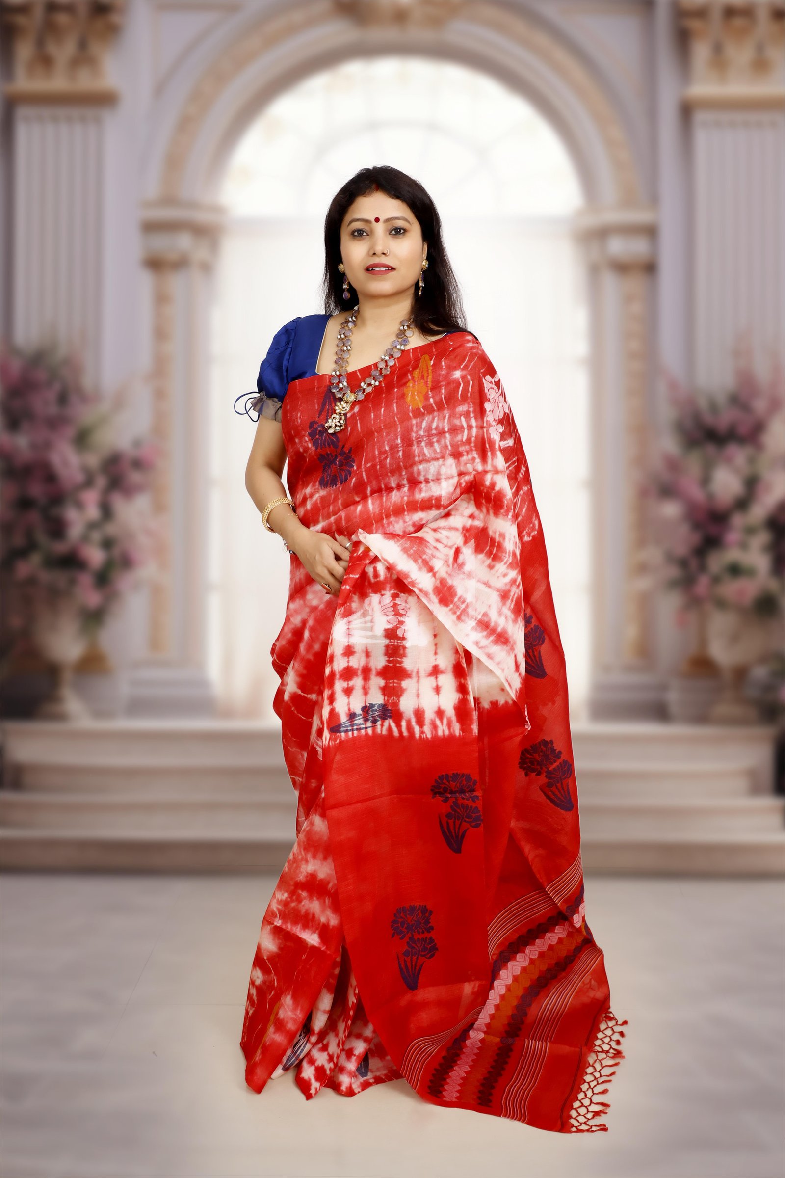 This exquisite saree is crafted in pure handwoven Tussar silk, blending the timeless elegance of Jamdani weaving with the contemporary artistry of Shrivori dyeing. Its rich texture, natural sheen, and intricate detailing makes it a perfect choice for festive occasions, cultural gatherings, or elegant evening wear. Each piece is Silk Mark & Handloom Mark certified, ensuring authenticity and premium quality.
