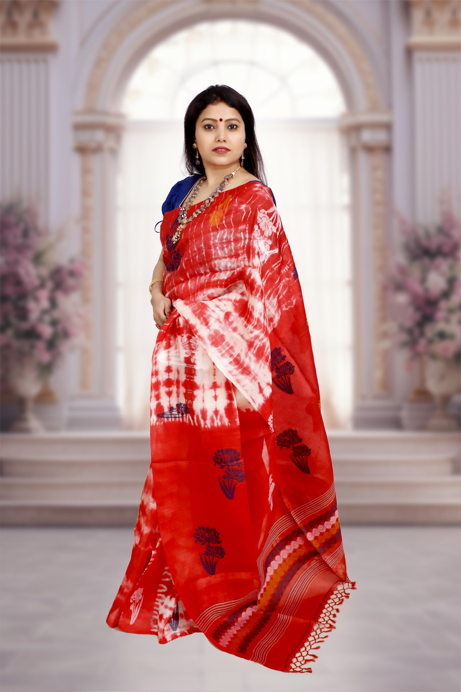 This exquisite saree is crafted in pure handwoven Tussar silk, blending the timeless elegance of Jamdani weaving with the contemporary artistry of Shrivori dyeing. Its rich texture, natural sheen, and intricate detailing makes it a perfect choice for festive occasions, cultural gatherings, or elegant evening wear. Each piece is Silk Mark & Handloom Mark certified, ensuring authenticity and premium quality.