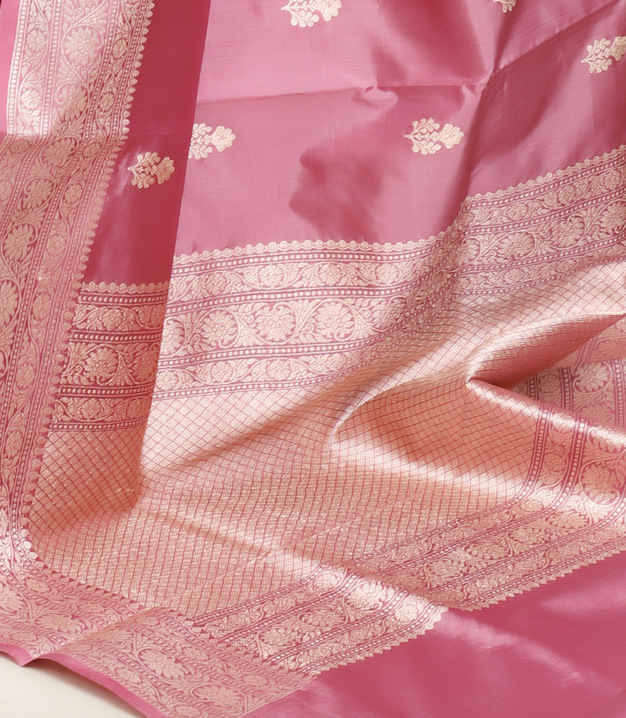 Pure Katan Silk Banarasi Handloom Saree with Kadhua Work – Onion Pink