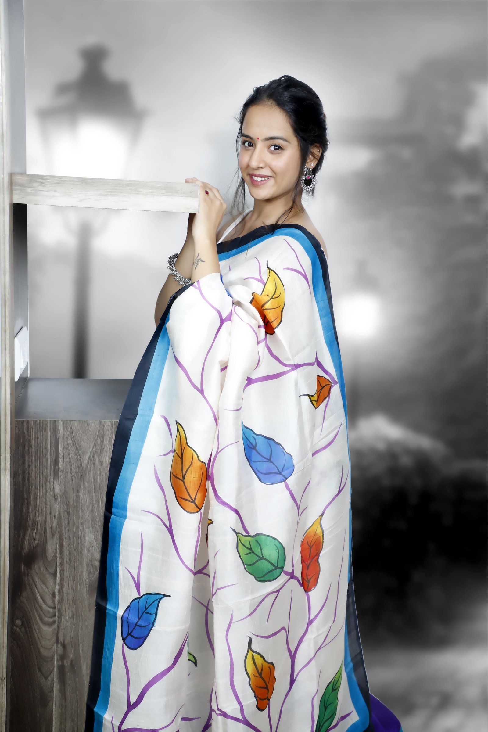 A true work of art, this saree is crafted from pure Murshidabad silk and adorned with exquisite hand-painted designs that reflect timeless craftsmanship. Lightweight, lustrous, and elegant, it carries the assurance of authenticity, each saree comes with a Silk Mark certification . Perfect for those who value tradition, artistry, and genuine luxury.